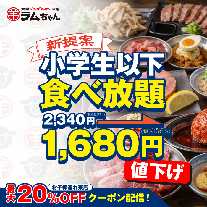 春休みは家族でラムちゃんへ!小学生食べ放題が値下げ&お子様連れで使えるアプリクーポン配信(3/20)