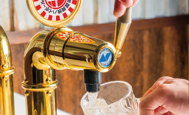 卓上に設置されたタワーより注がれたハイボールは業務用強炭酸「VOL5」によってバッチバチの炭酸になります。